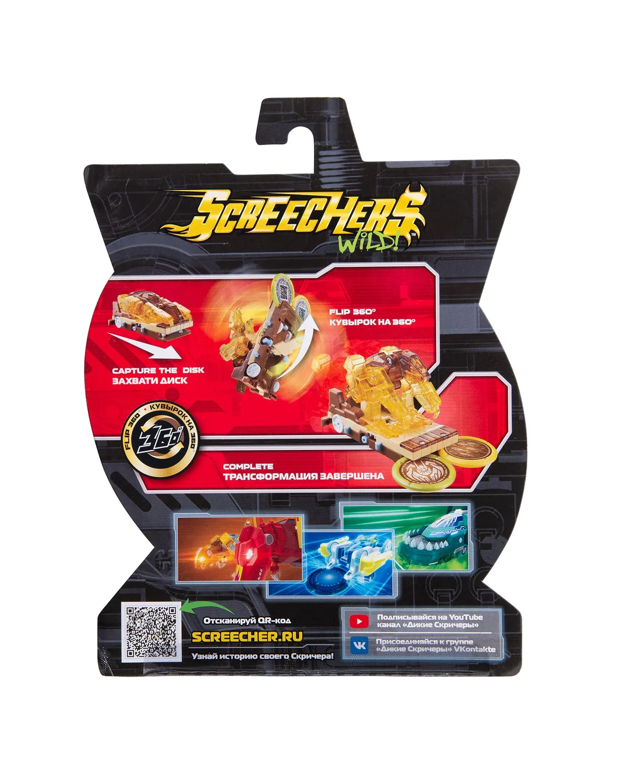 Машинка-трансформер "Дикий Скричер" превращается в велоцираптор, переворачиваясь в воздухе на 360°! Скричеров 5-ой линейки можно трансформировать не только по одному, но и, соединив их все вместе, трансформировать одним броском.