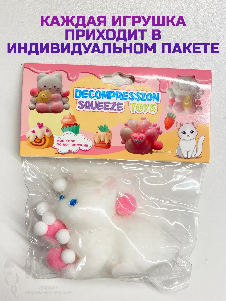 - Антистресс игрушка Таба сквиш лапка котик с флоком сквиши