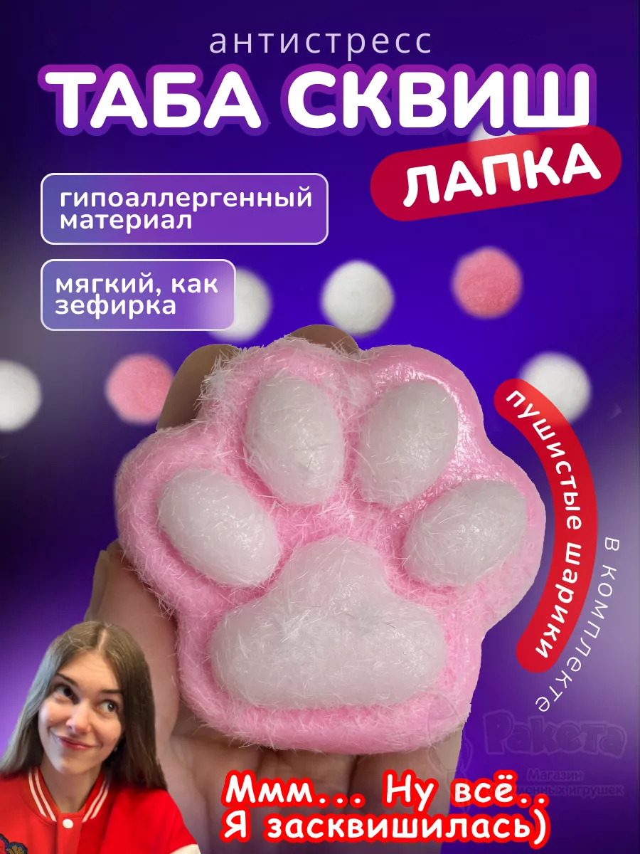 - Антистресс игрушка Таба сквиш лапка липкая сквиши с флоком