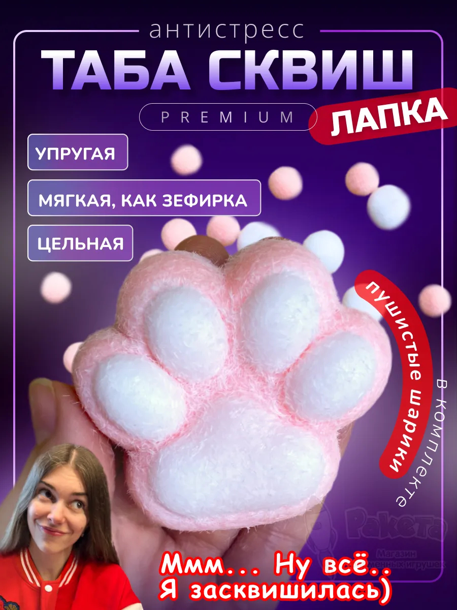 - Антистресс игрушка Таба сквиш лапка с флоком сквиши