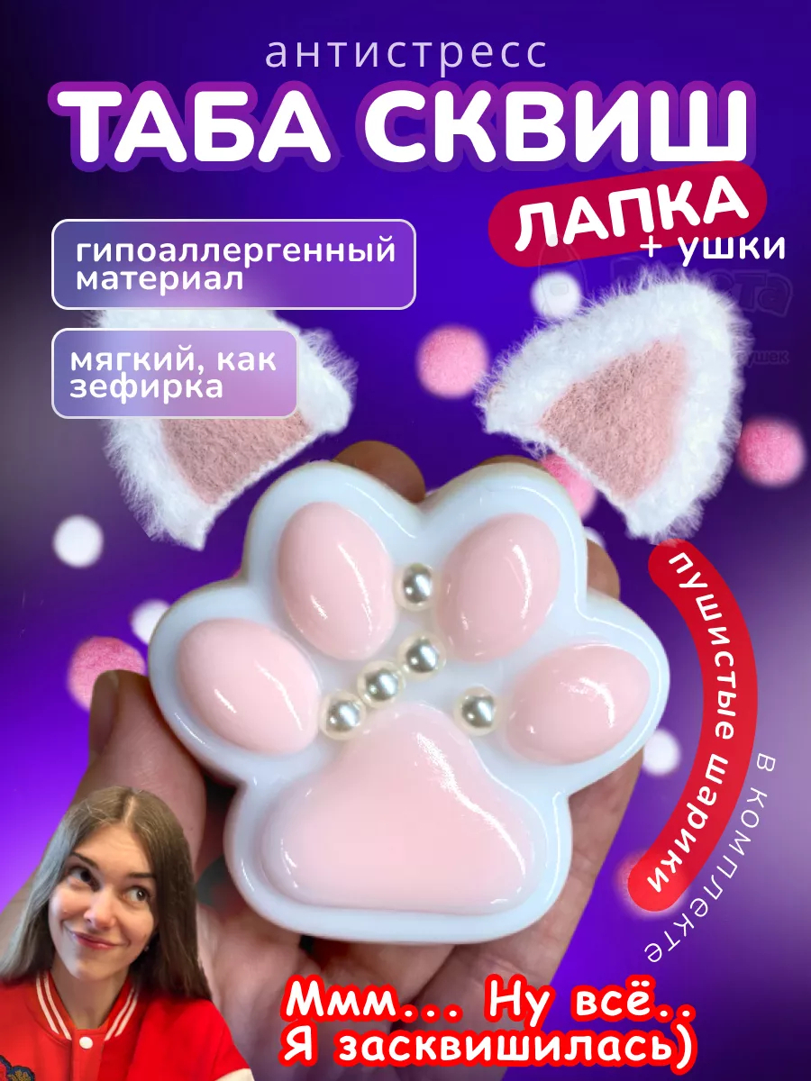 - Антистресс игрушка Таба сквиш лапка с ушками липкая сквиши