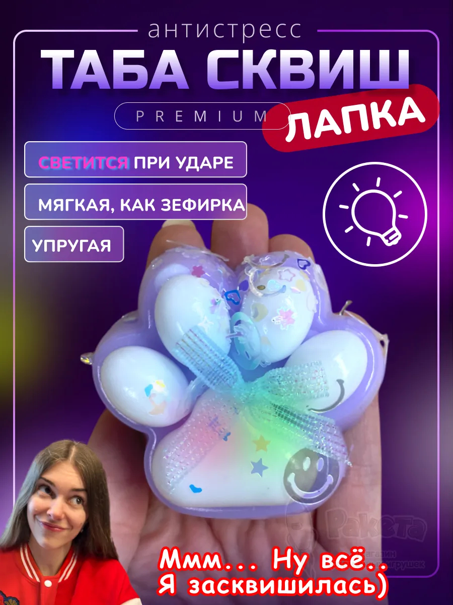 - Антистресс игрушка Таба сквиш лапка со светом липкая