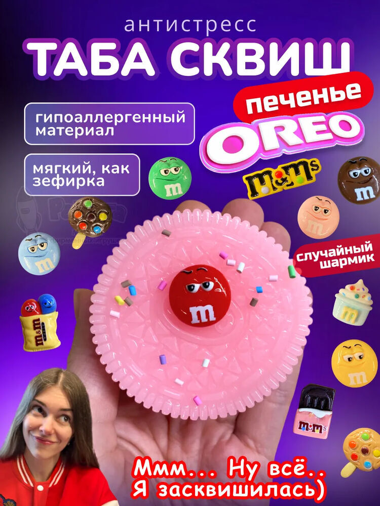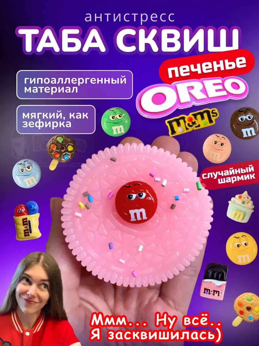 - Антистресс игрушка Таба сквиш лапка печенье Орео розовое