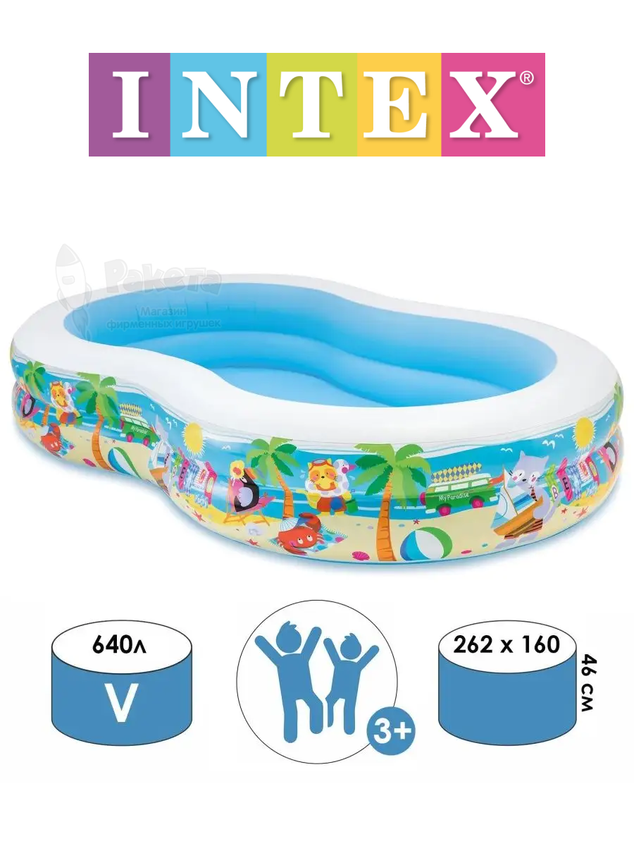 Бассейн детский надувной Лагуна 262х160х46 Intex 56490NP: