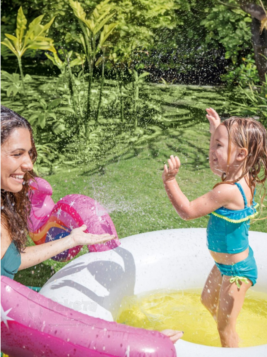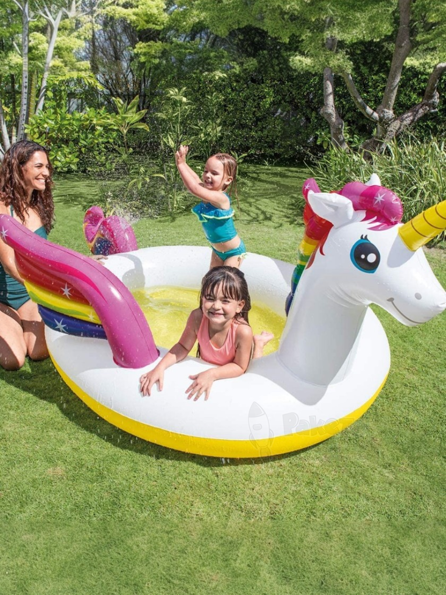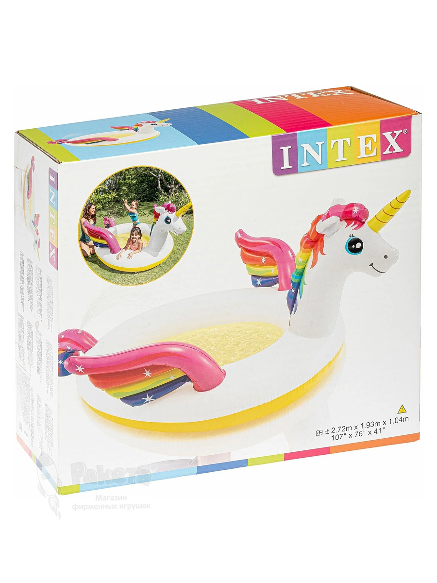 - Бассейн детский надувной Волшебный единорог 272х193х104 Intex 57441NP с распылителем