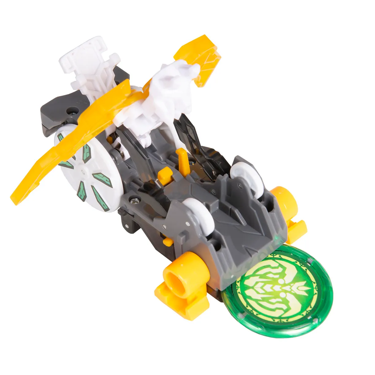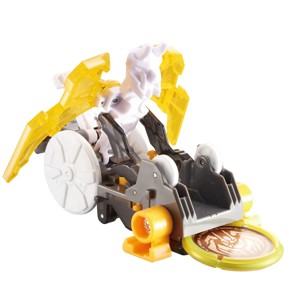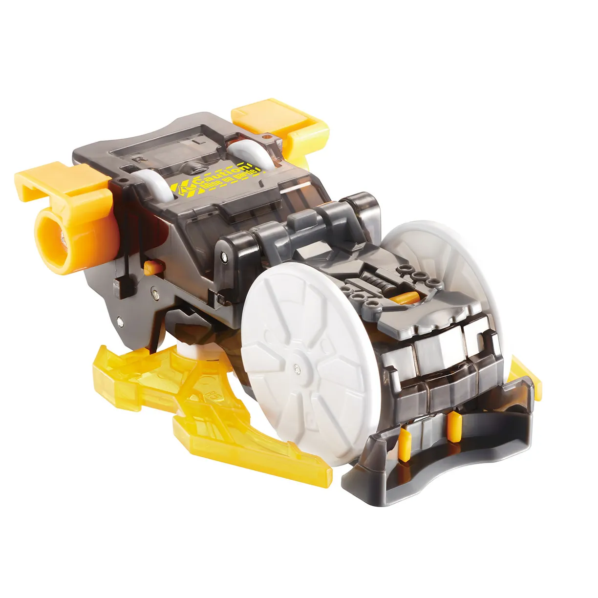 Дикий Скричер разгоняется, ловит диск, делает кувырок на 180°, захватывает второй диск, делает кувырок на 360° и самостоятельно трансформируется прямо в воздухе. Обратно в машинку игрушка собирается вручную.