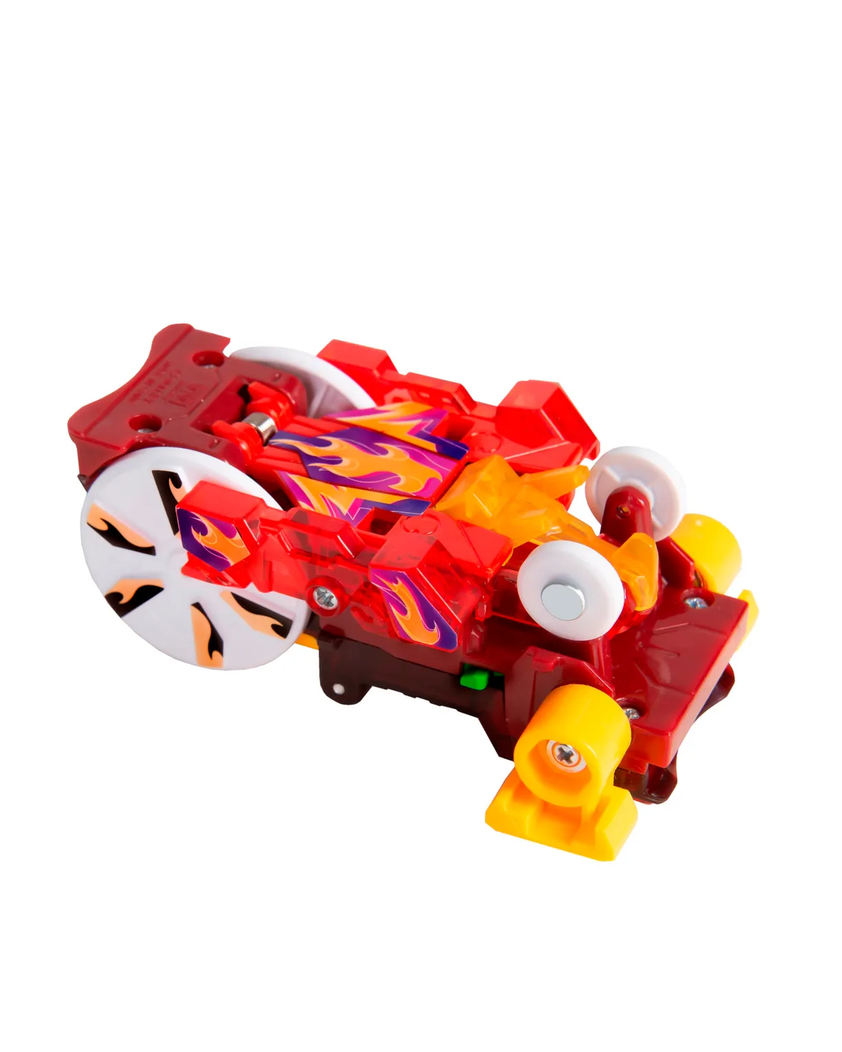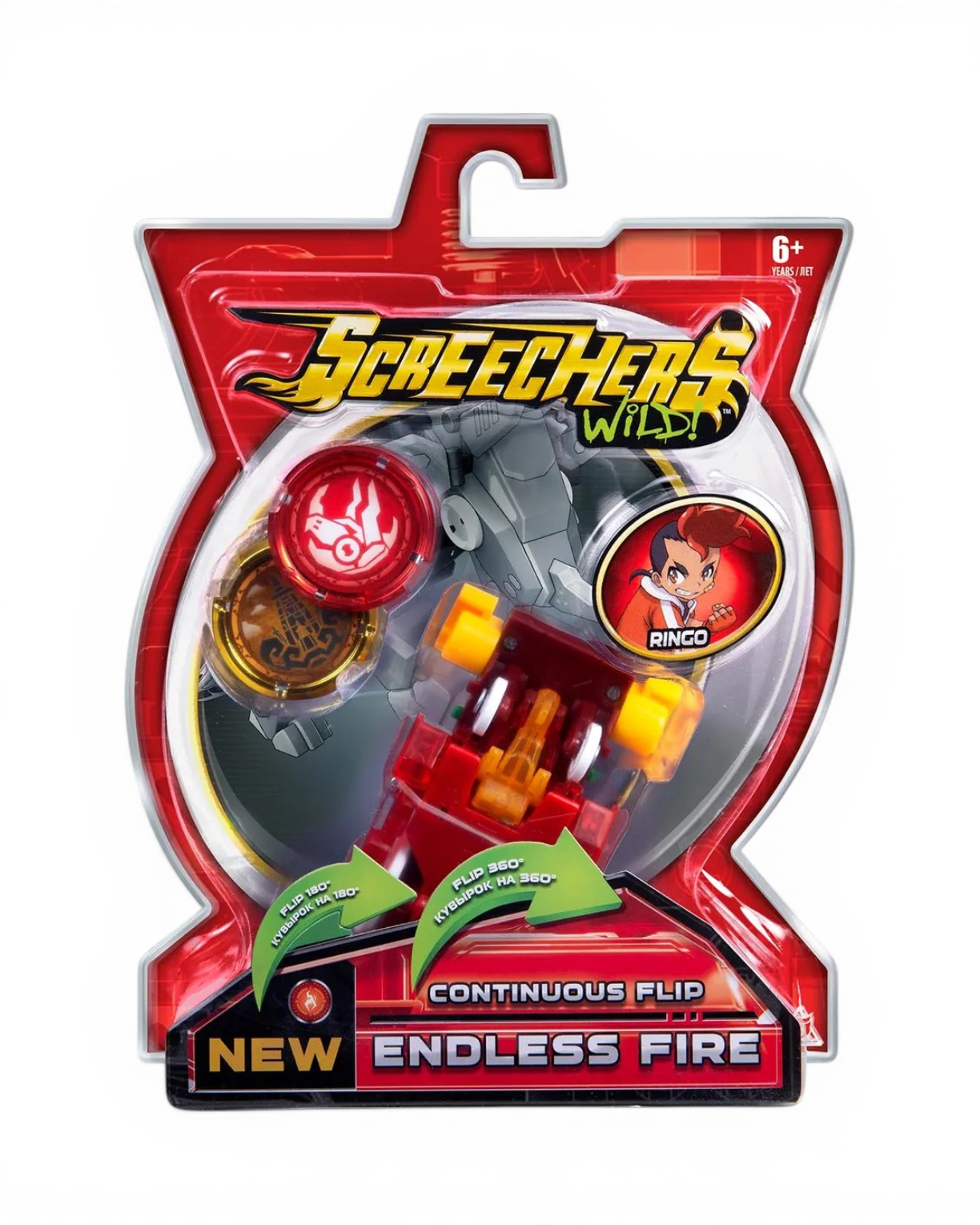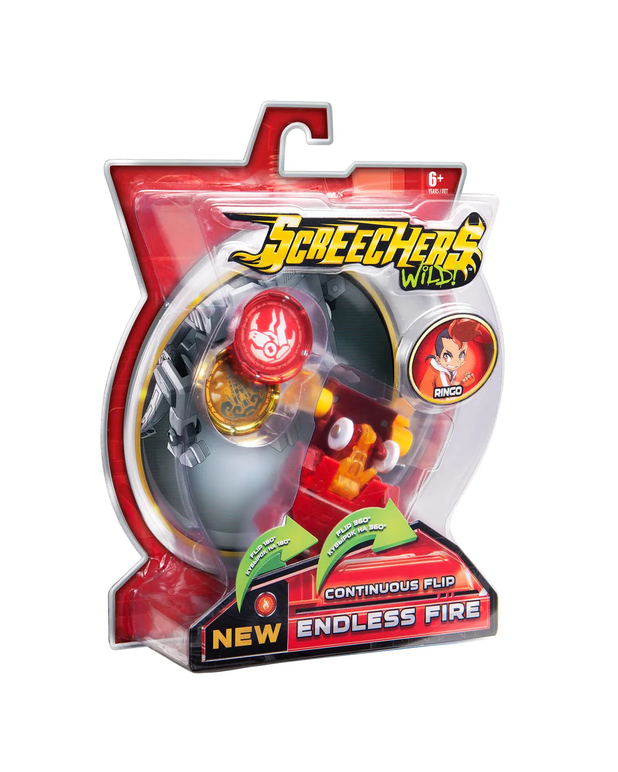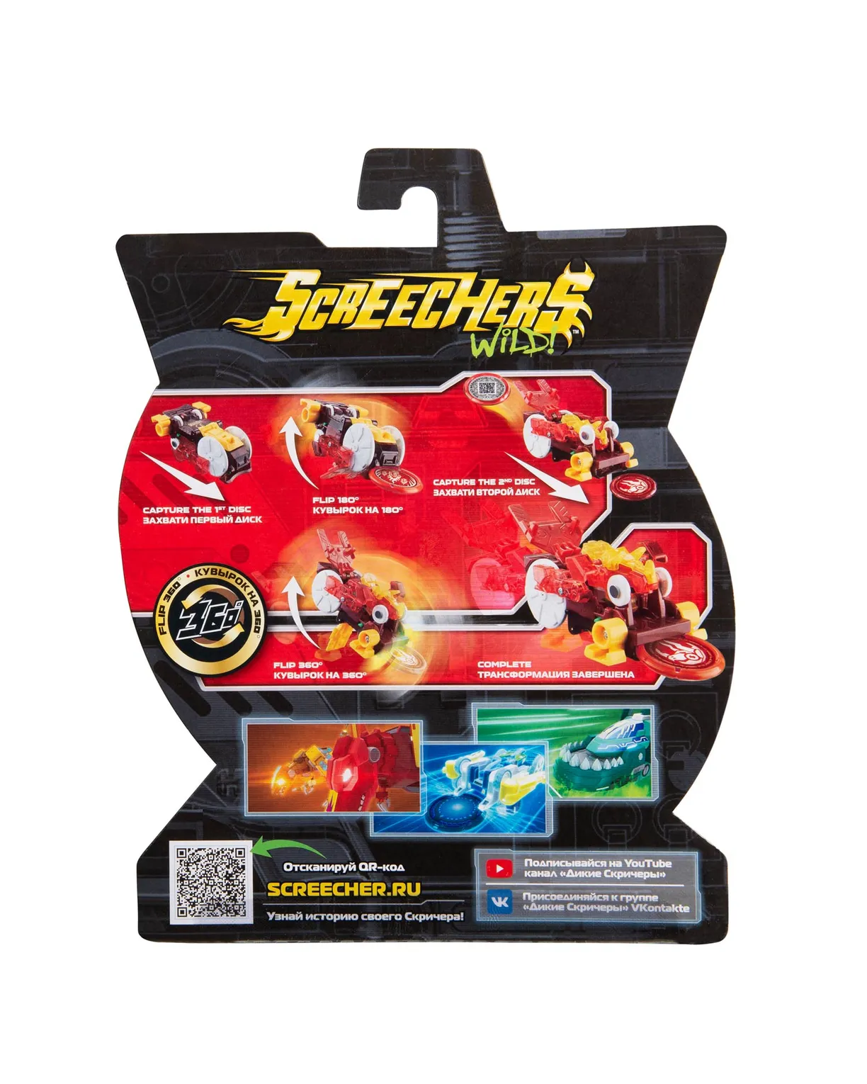 Машинка-трансформер "Дикий Скричер" превращается в дракона, переворачиваясь в воздухе! Отличительная особенность Скричеров 4-ой линейки – двойной кувырок! Дикий Скричер разгоняется, ловит диск, делает кувырок на 180°, захватывает второй диск, делает кувырок на 360° и самостоятельно трансформируется прямо в воздухе. Обратно в машинку игрушка собирается вручную.