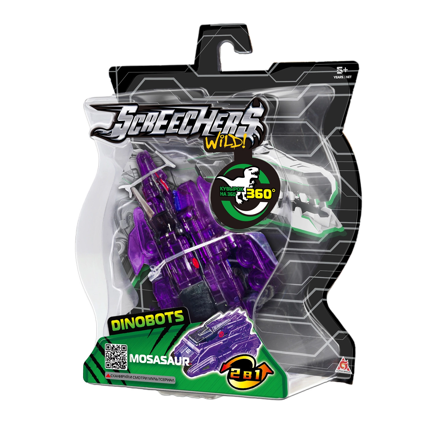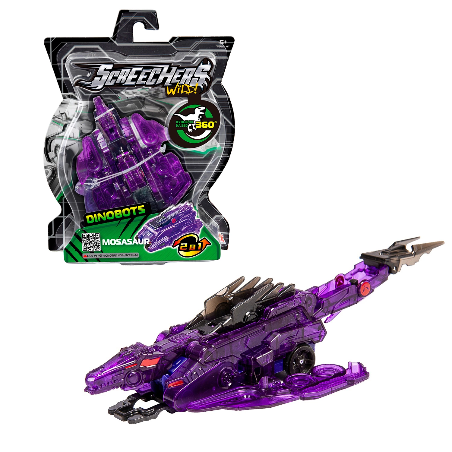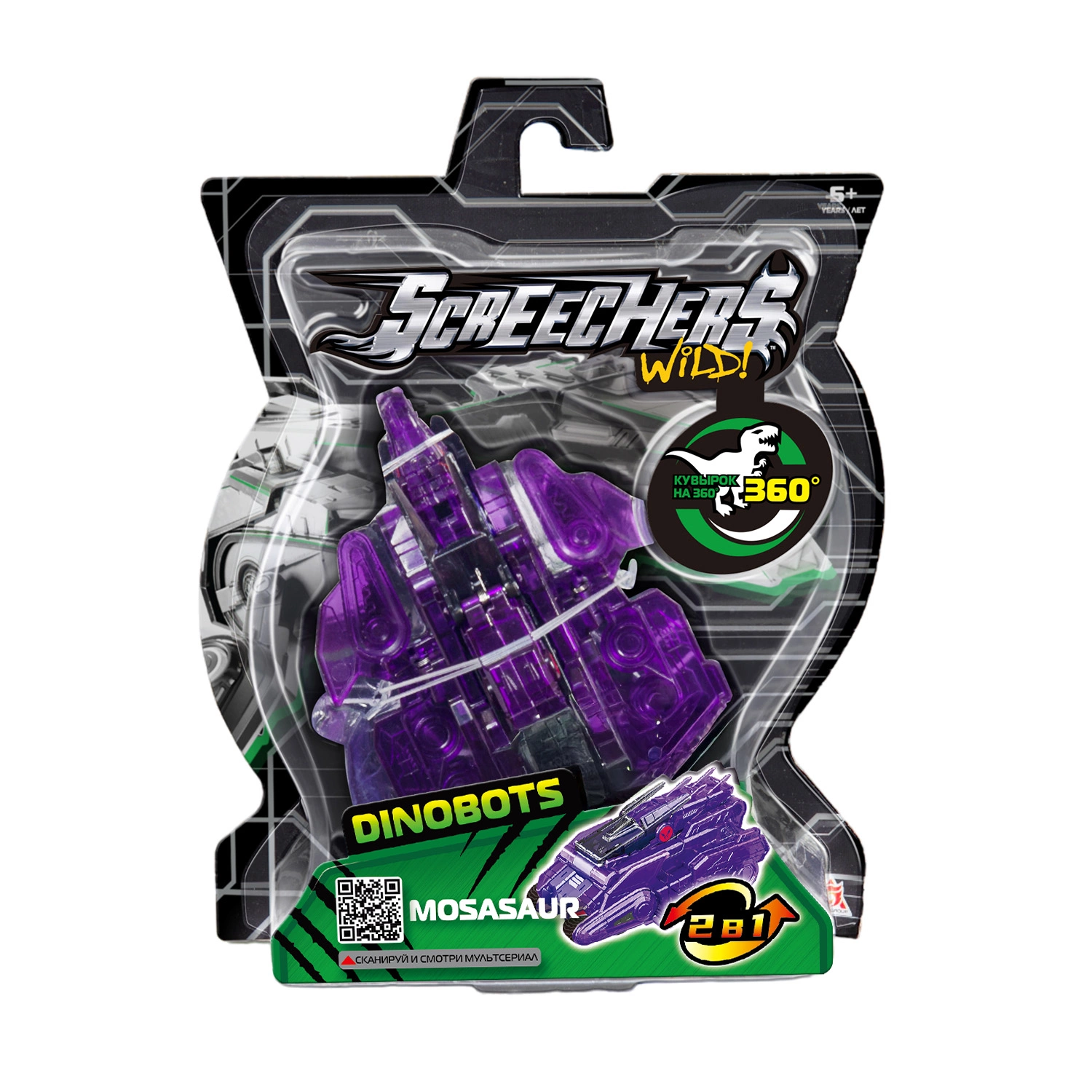 Тематическая линейка – Диноботы. Редкий скричер Мозазавр разгоняется и делает кувырок на 360°, самостоятельно трансформируясь прямо в воздухе! Обратно в машинку игрушка собирается вручную. Несколько движений - и она готова к новому кувырку. Для трансформации не нужен скричер-диск!