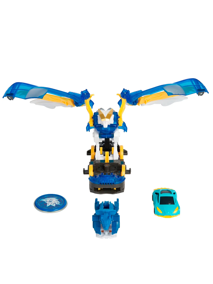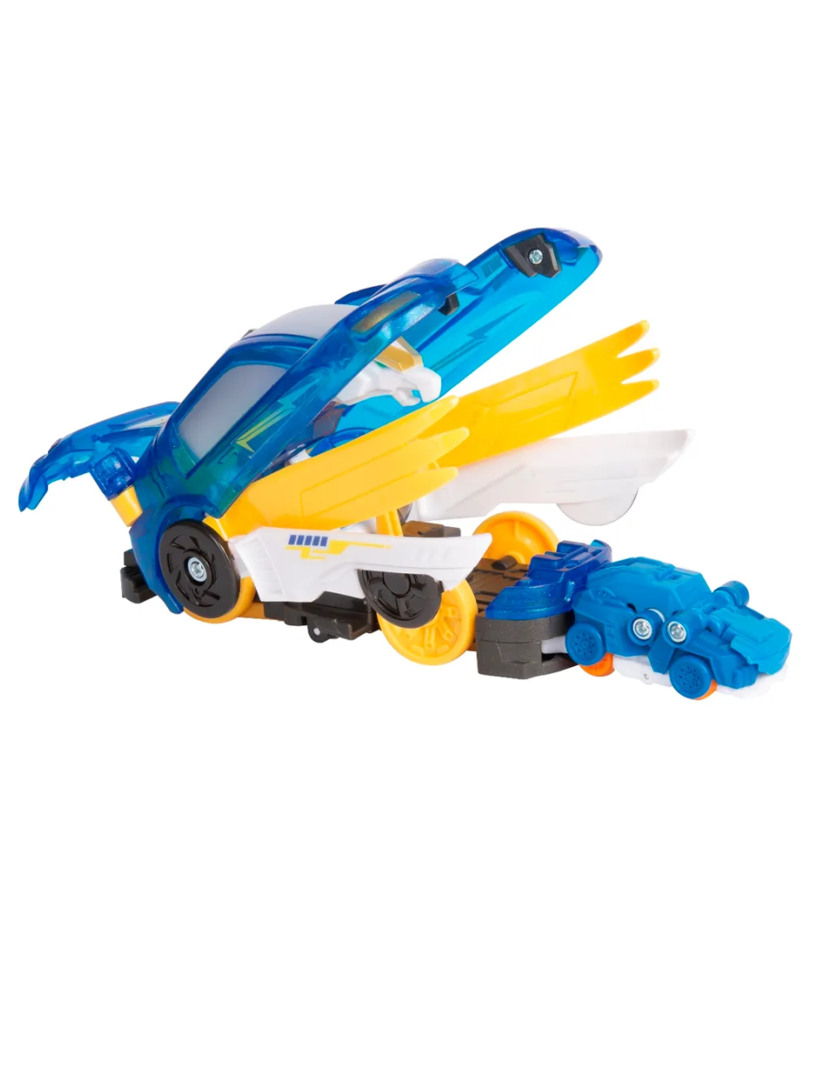 - 2 новых дополнительных элемента для трансформации - мини-кар в виде небольшой голубо-желтой машинки и мини-скричер в виде трицератопса;