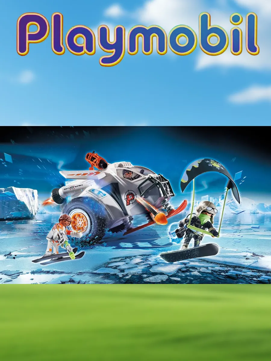 Благодаря своему универсальному снегоходу, лучшие агенты перемещаются с молниеносной скоростью как по заснеженным поверхностям, так и в воздухе. Подпружиненные лыжи и колеса позволяют снегоходу скользить по льду словно по волшебству. Агенты Агил и Пи перевозят на снегоходе энергетический модуль. Конечно, спортивный агент Агил предпочитает передвигаться по снегу на лыжах. Но агенты не успевают далеко уехать, как к ним приближается арктический повстанец на своем кайте для серфинга. Игровой набор включает в себя снегоход команды шпионов со складными крыльями и работающей болт-пушкой, кайтсерфера, три фигурки PLAYMOBIL, энергетический модуль со светом и звуком, а также множество других аксессуаров для лучших агентов.