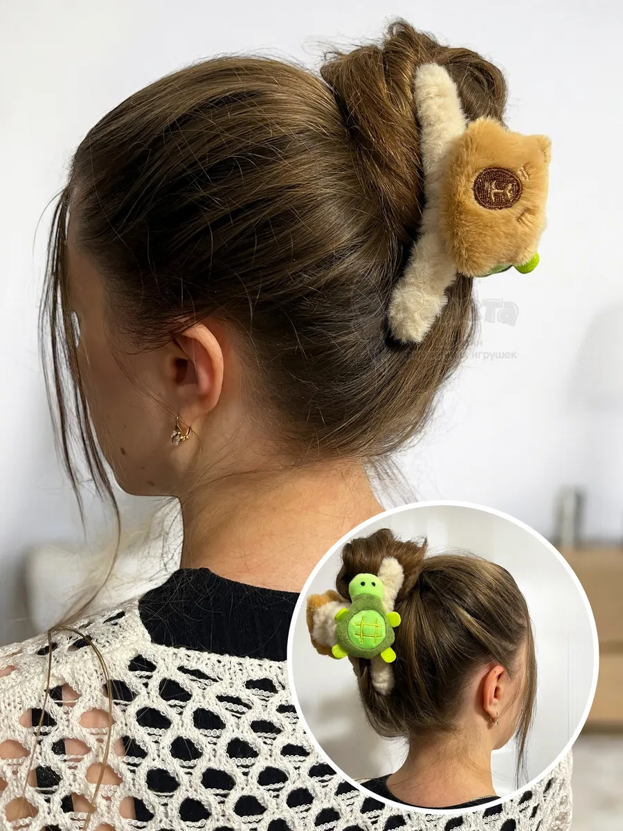 - Заколка крабик краб для волос пушистый плюшевый капибара