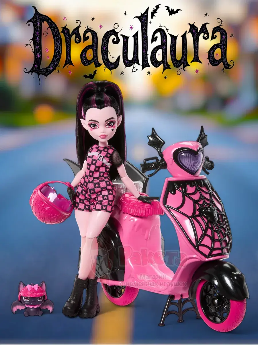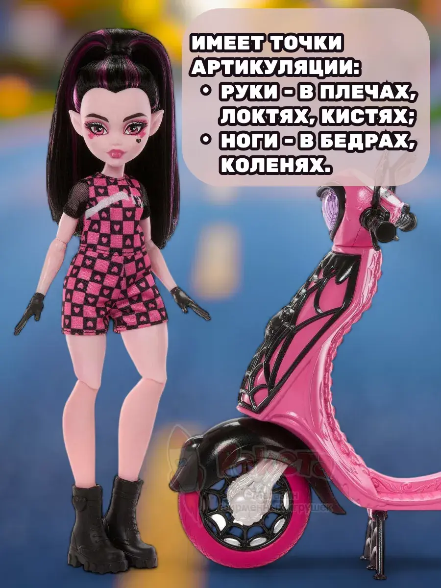- Кукла Монстр Хай Vamptastic Scooter Дракулаура JDR61