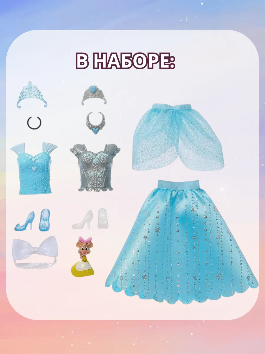 от оригинального бренда Hasbro. В наборе коробка является игровым элементом в виде шкафа с сюрпризами. В наборе 2 наряда, аксессуары и маленькая помощница в виле мышки.