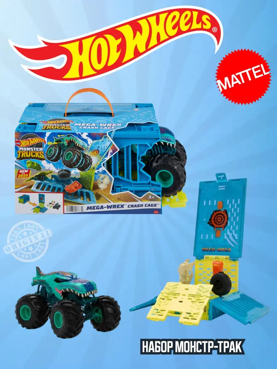 - Автотрек Хот Вилс Монстр Трак Аварийная клетка Mega Wrex