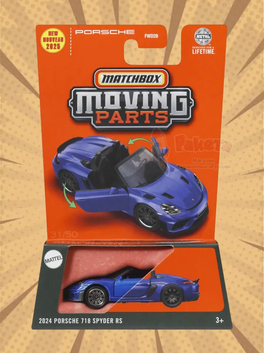 100% оригинал. Машинка Hot Wheels Matchbox Moving Parts 2024 Porsche 718 Spyder RS от оригинального бренда Mattel. Машина литая, в масштабе 1:64. Машинка подойдет как для коллекционеров, так и для любителей.
