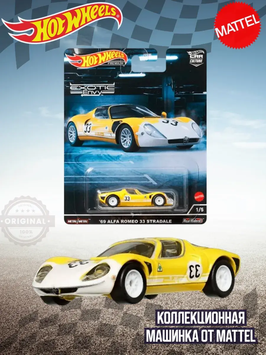 100% оригинал. Машинка Hot Wheels Premium Car Alfa Romeo 33 Stradale от оригинального бренда Mattel.