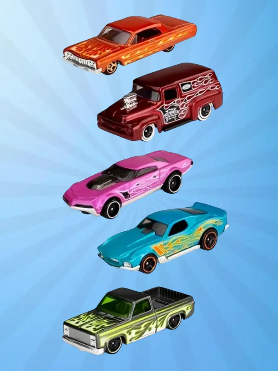 100% оригинал. Набор из 5 машинок Хот Вилс Flames от оригинального бренда Mattel. Машинки литые, в масштабе 1:64. Машинки подойдут как для коллекционеров, так и для любителей.