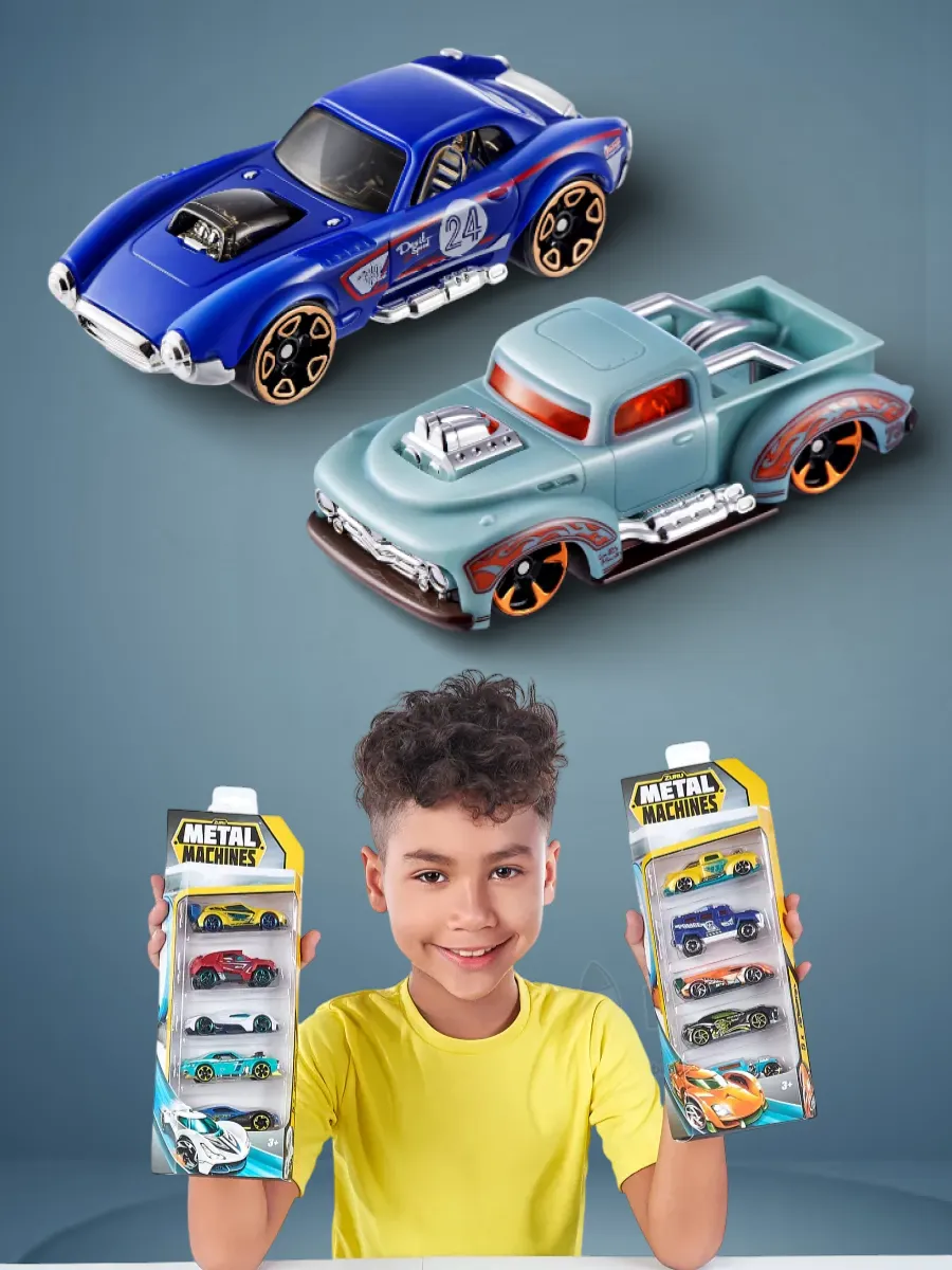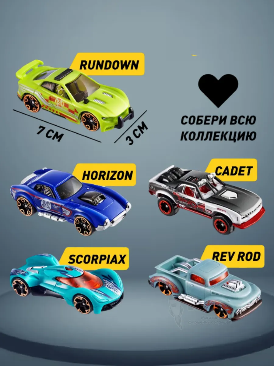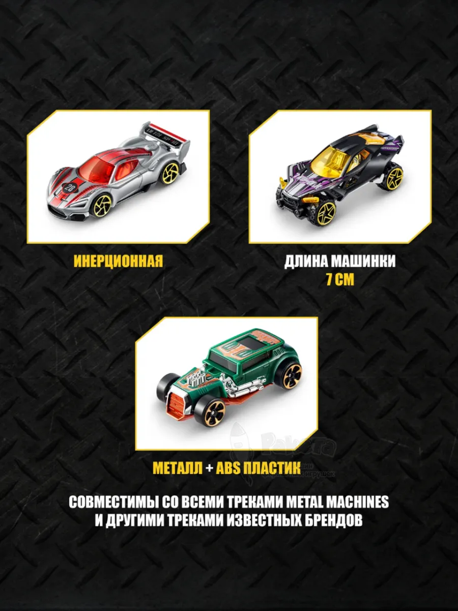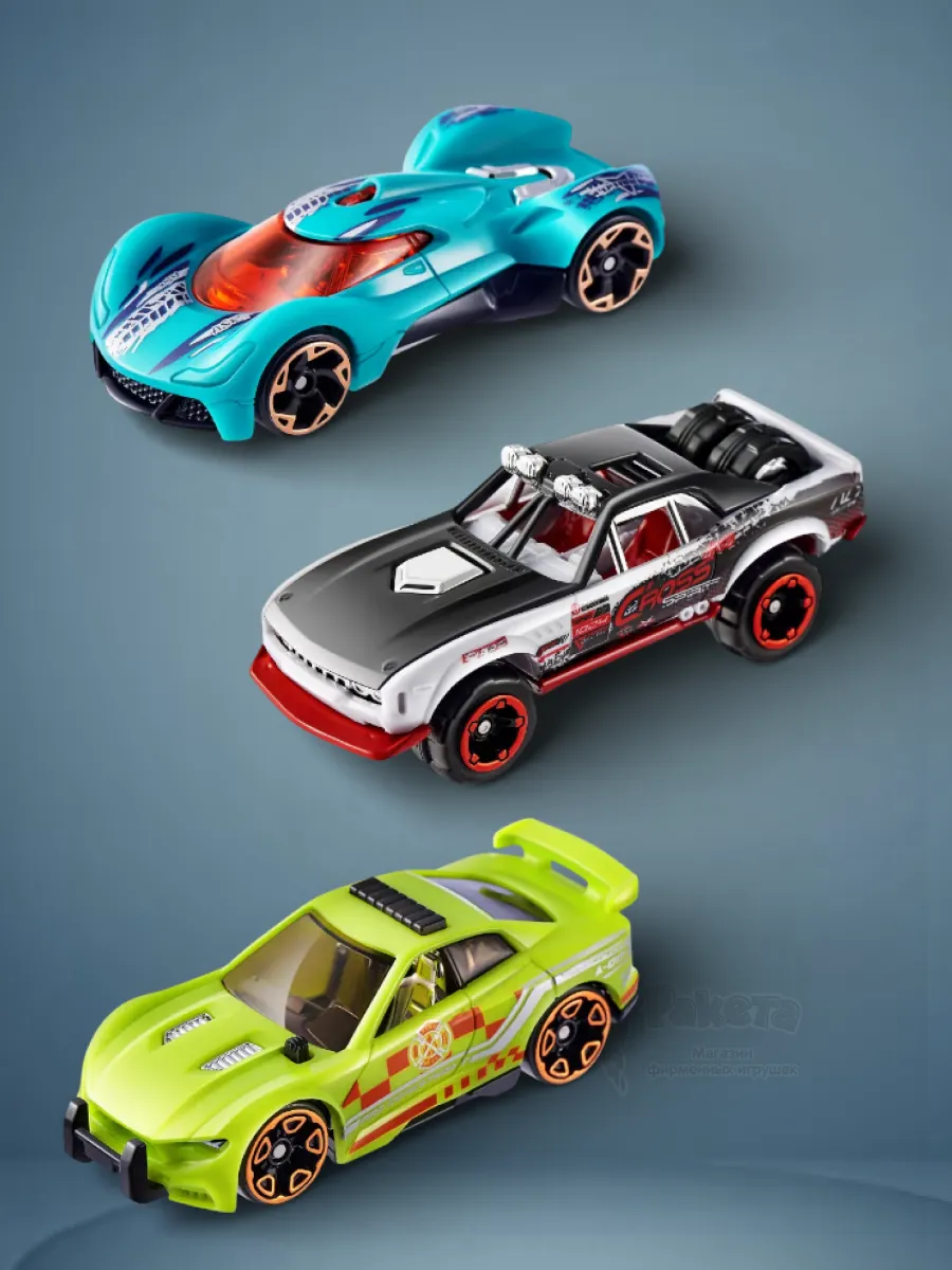 В наборе - 5 машинок с ярким дизайном и рисунком в стиле аэрографии. Свободные поворотные колеса.