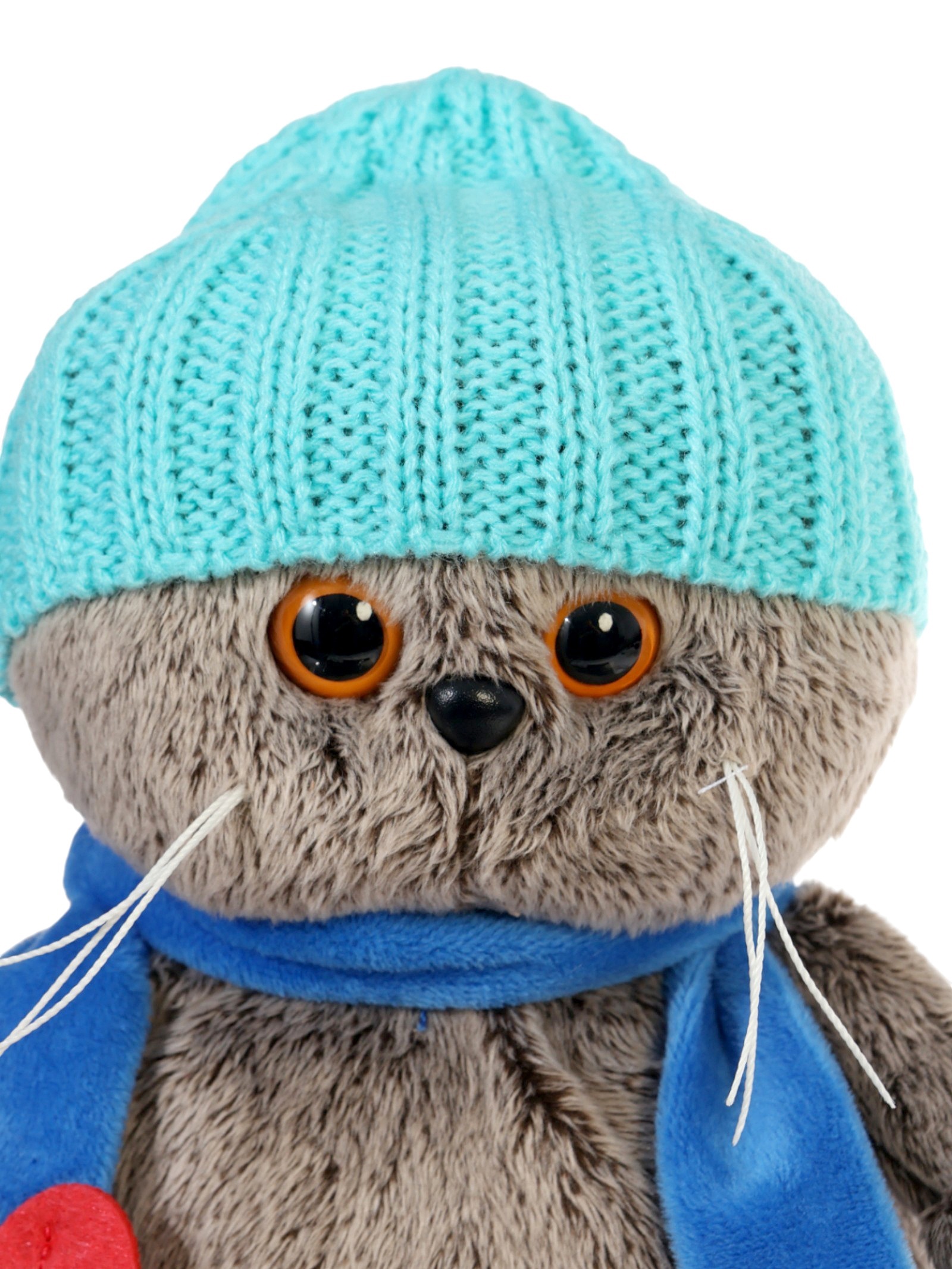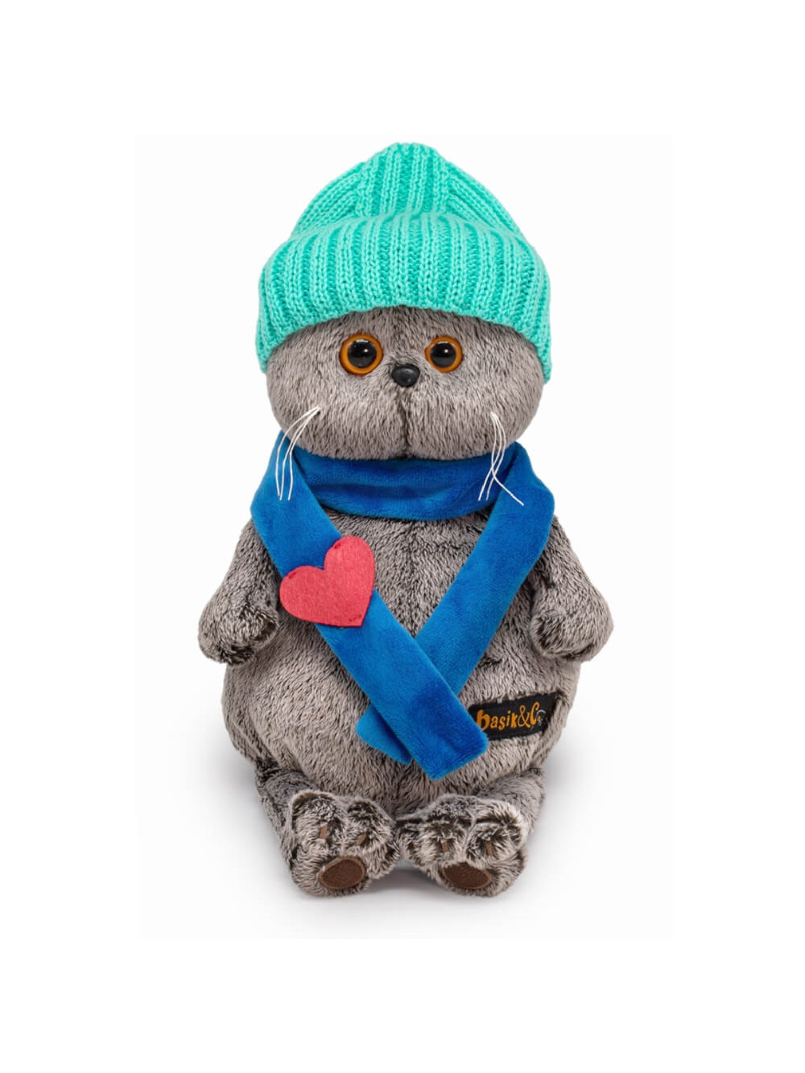 - Мягкая игрушка Басик в шапке и шарфе с сердечком 19 см Ks19-250