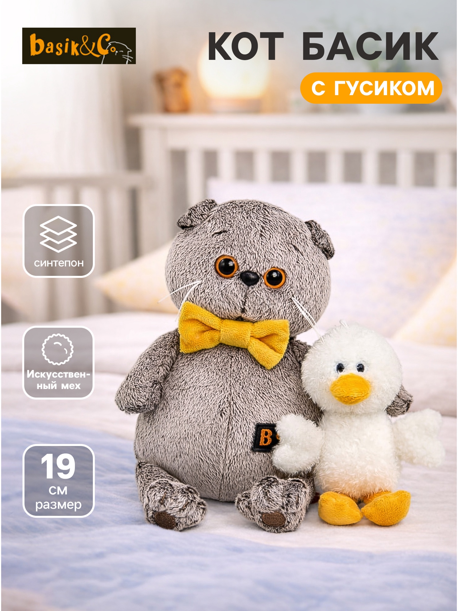 - Мягкая игрушка Кот Басик с Гусиком 19 см Ksm19-006