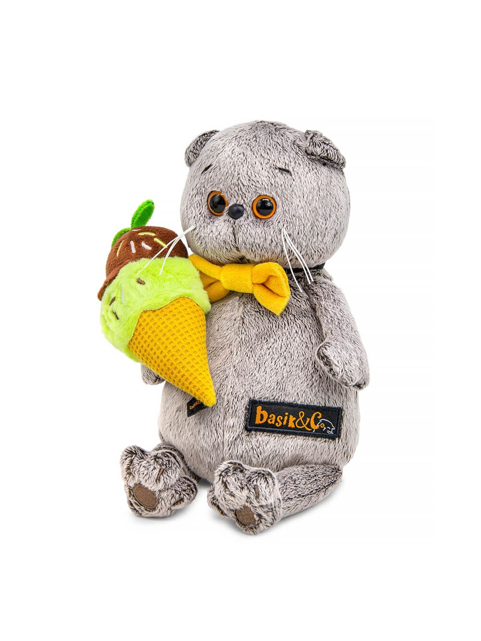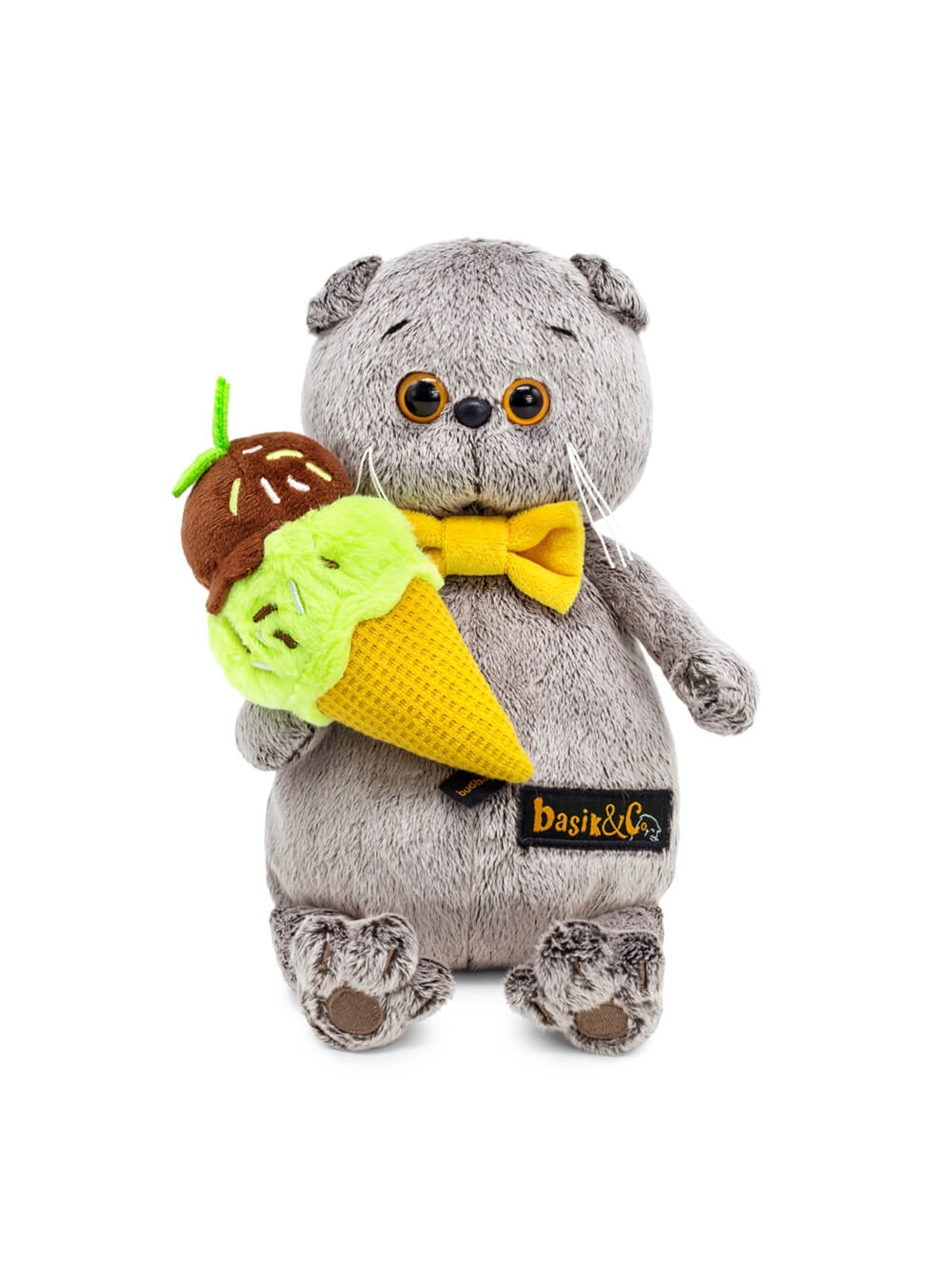 - Мягкая игрушка Кот Басик с мороженым 19 см Ksm19-005