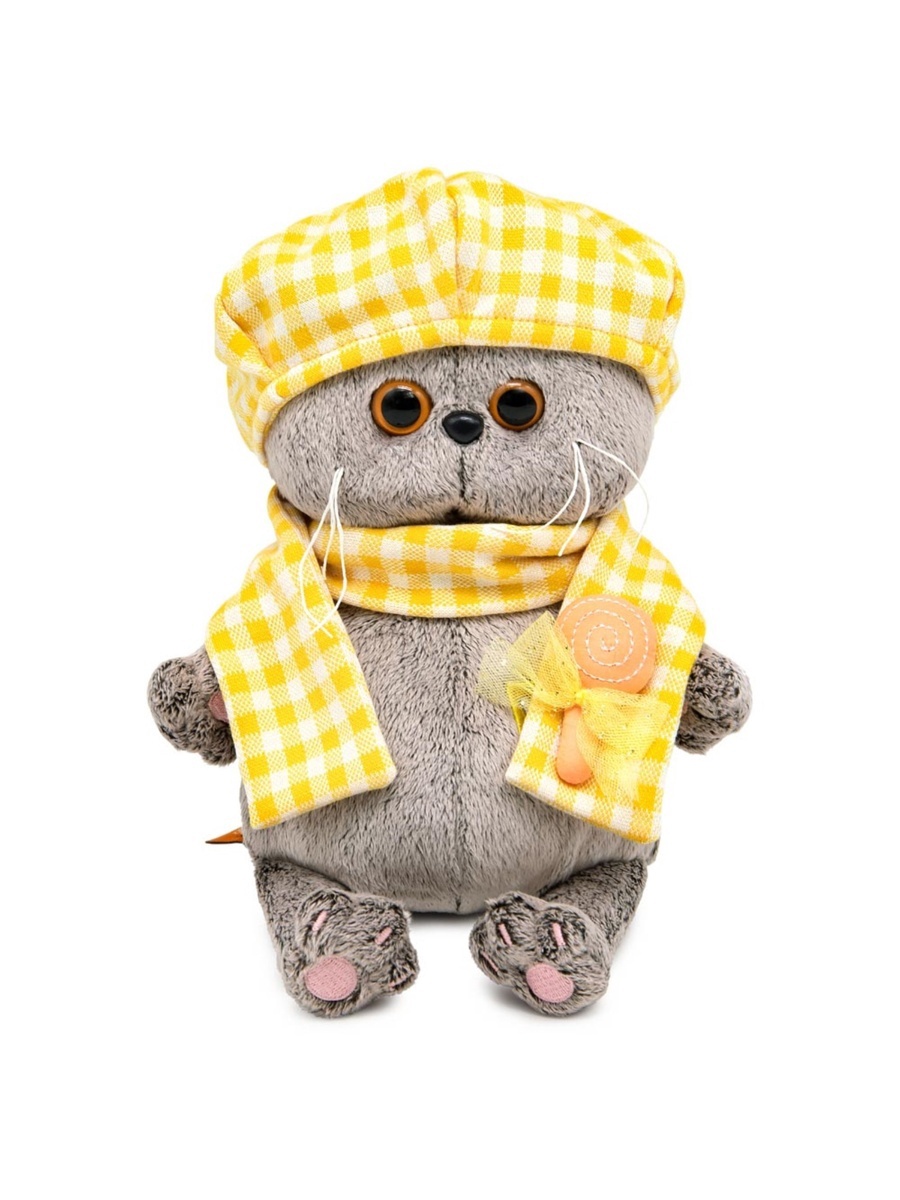 - Мягкая игрушка Кот Басик в берете и шарфе в клетку 20 см BB-146