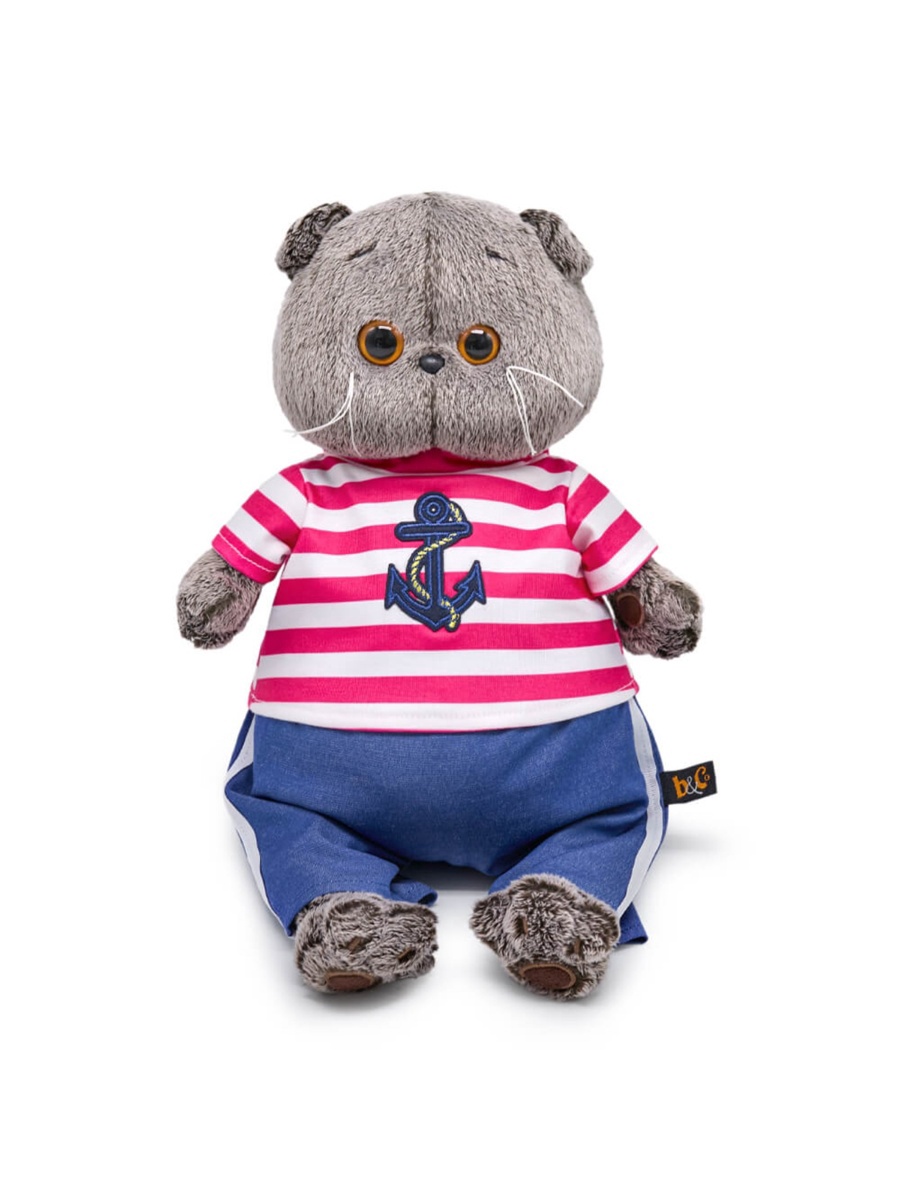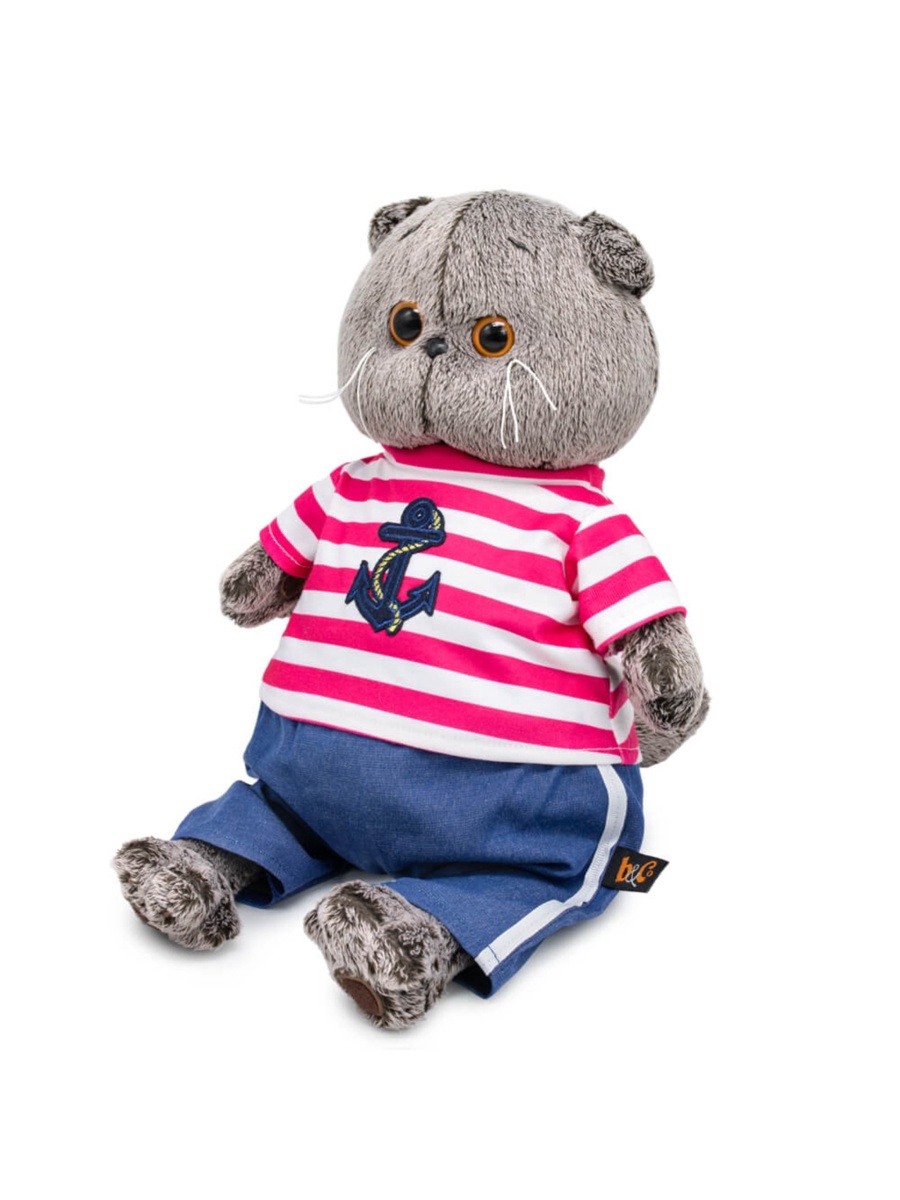 - Мягкая игрушка Кот Басик в полосатой футболке с якорем 19 см Ks19-266