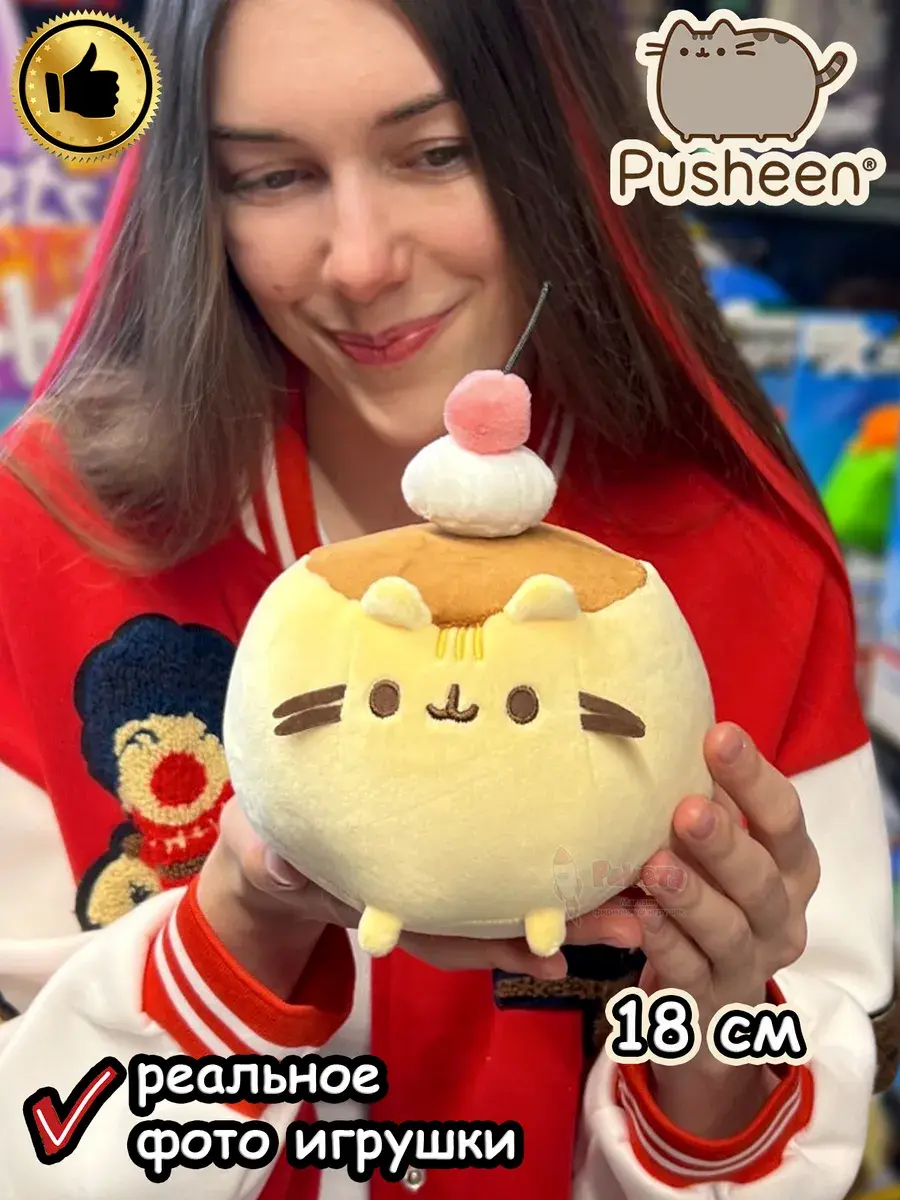 - Мягкая игрушка Пушин Кот Кэт плюшевый котик с вишенкой