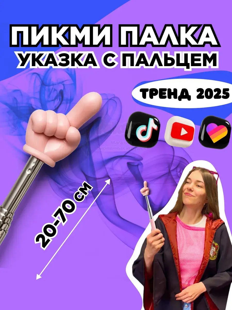 Телескопическая пикми палка указка с пальцем - это трендовый популярный аксессуар. Пиковая пигми палочка сделана из прочной нержавеющей стали, имеет телескопическую конструкцию - ее длину можно регулировать до 70 см.