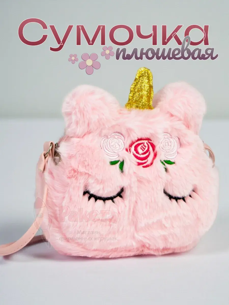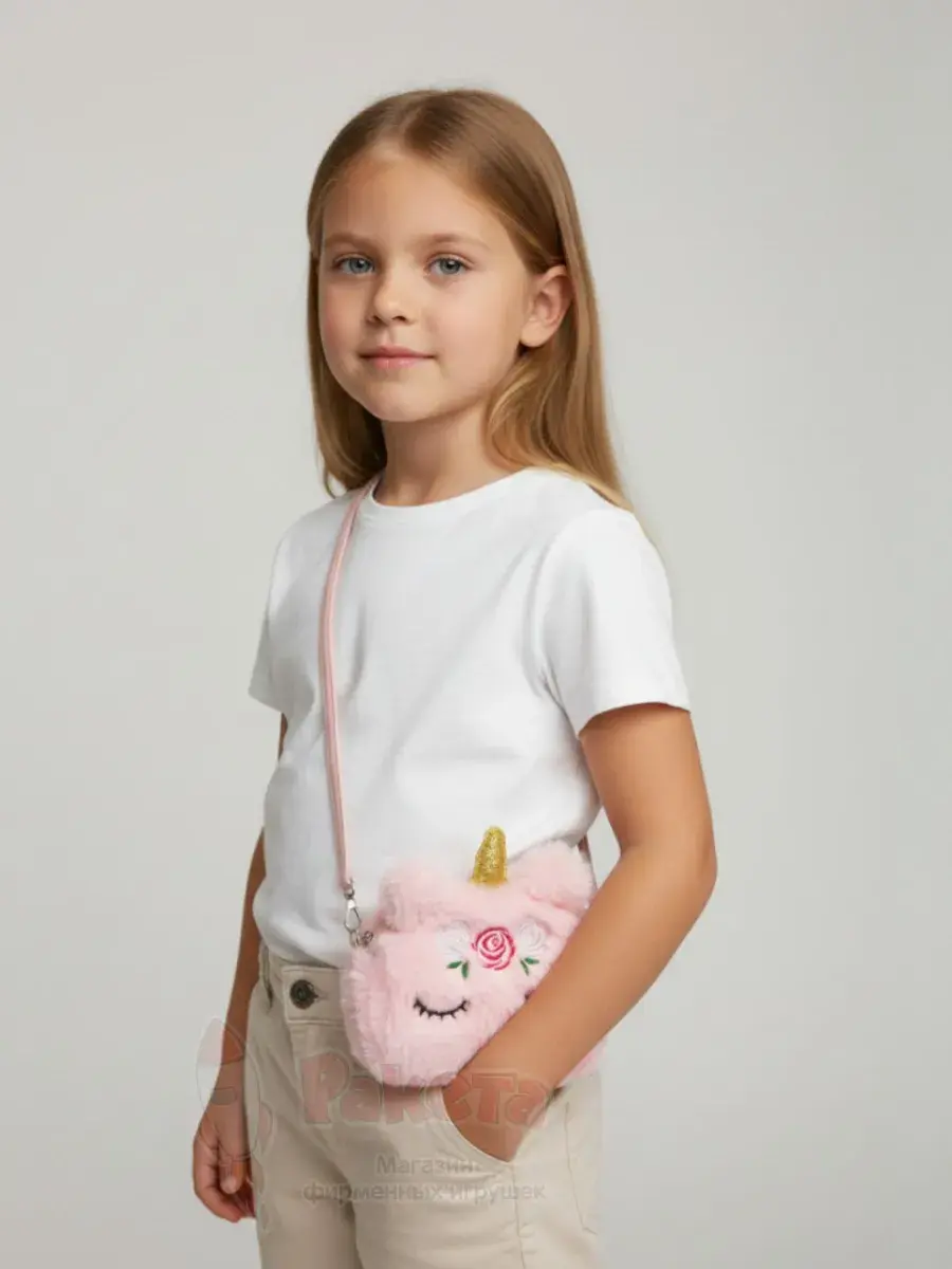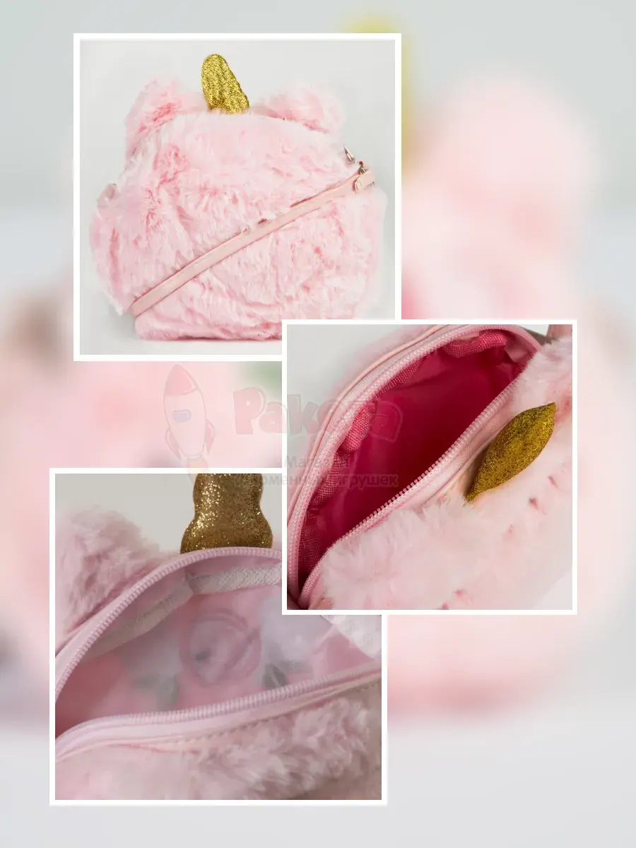 Такая модная розовая, плюшевая стильная сумочка в стиле единорога станет отличным подарком для ребенка!