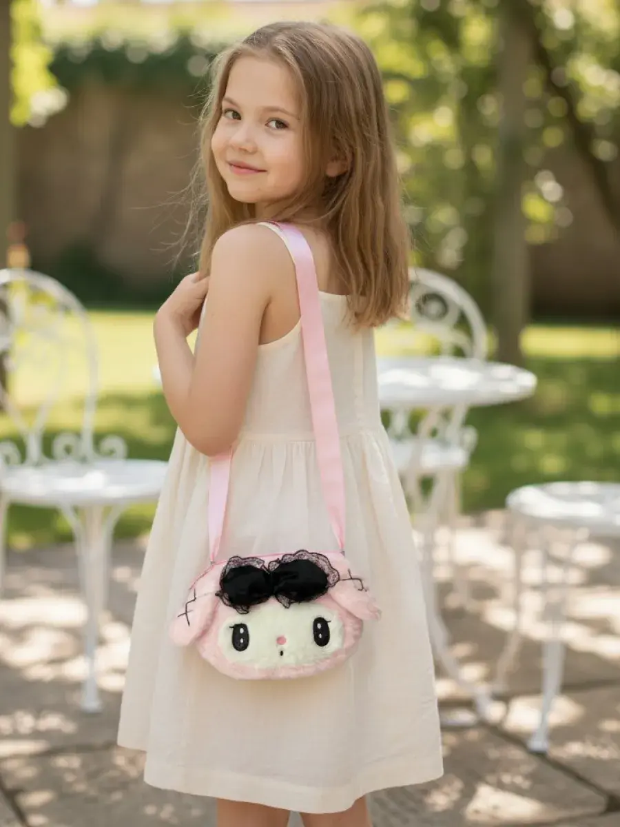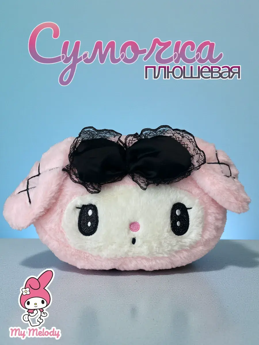 Такая модная розовая, плюшевая стильная сумочка в стиле мультиплткационного героя Мелоди "My Melody" станет отличным подарком для ребенка!