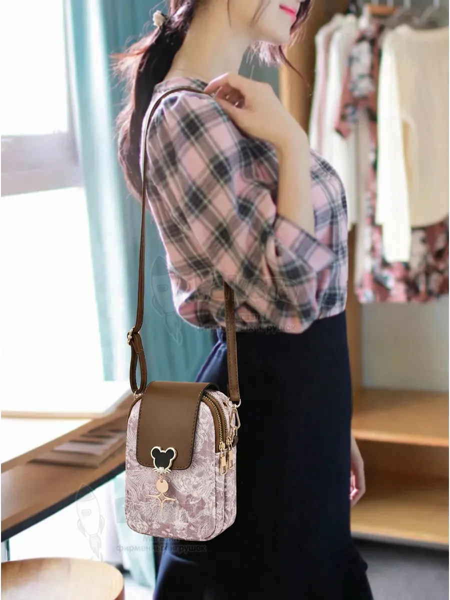 Сумка кросс боди для девочки подростка на плечо черного цвета с узорами и модной фурнитурой. Имеет регулируемый съёмный ремень. Внутри 2 отделения на замке и 1 небольшой карман внутри одного из отделений. Спереди сумочка закрывается магнитом. Есть отверстие для наушников.