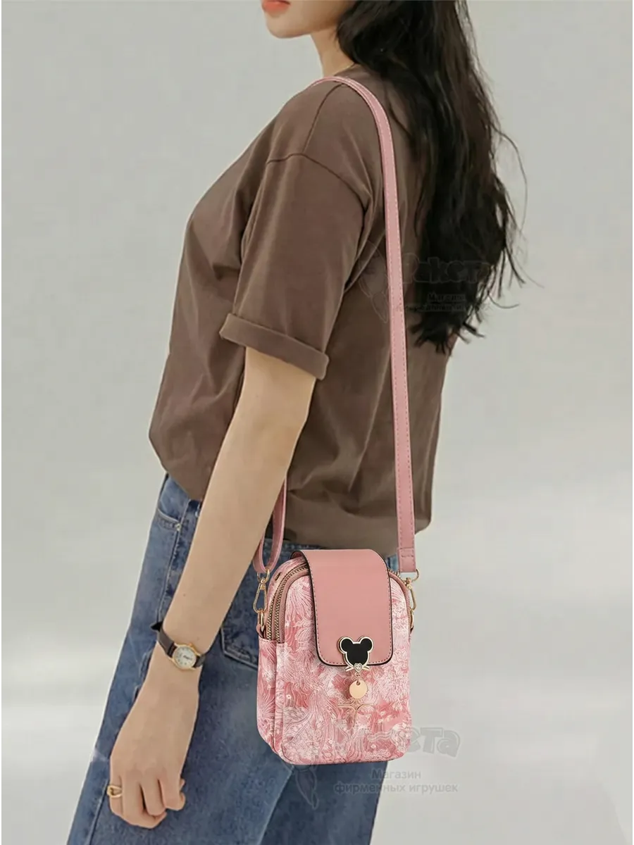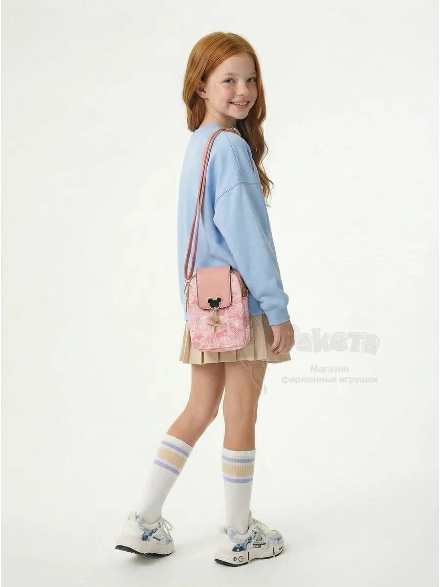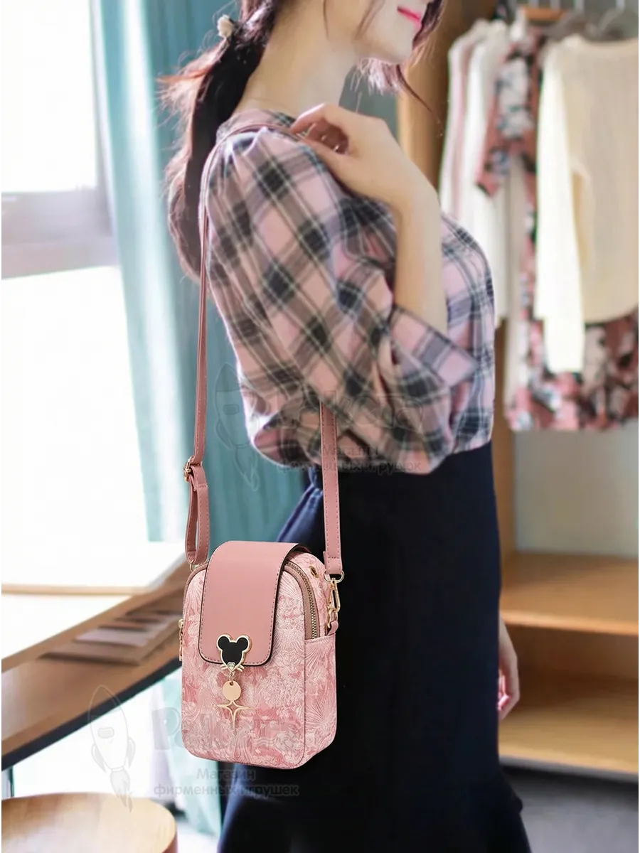 Сумка кросс боди для девочки подростка на плечо розового цвета с модной фурнитурой. Имеет регулируемый съёмный ремень. Внутри 2 отделения на замке и 1 небольшой карман внутри одного из отделений. Спереди сумочка закрывается магнитом. Есть отверстие для наушников.