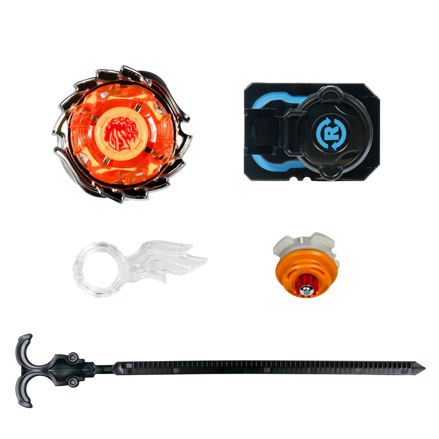 В комплект входят: волчок, пусковая установка, лента для запуска, сменный наконечник, монтажный инструмент, инструкция. Упаковка - коробка с окном 17×6×19,5 см.