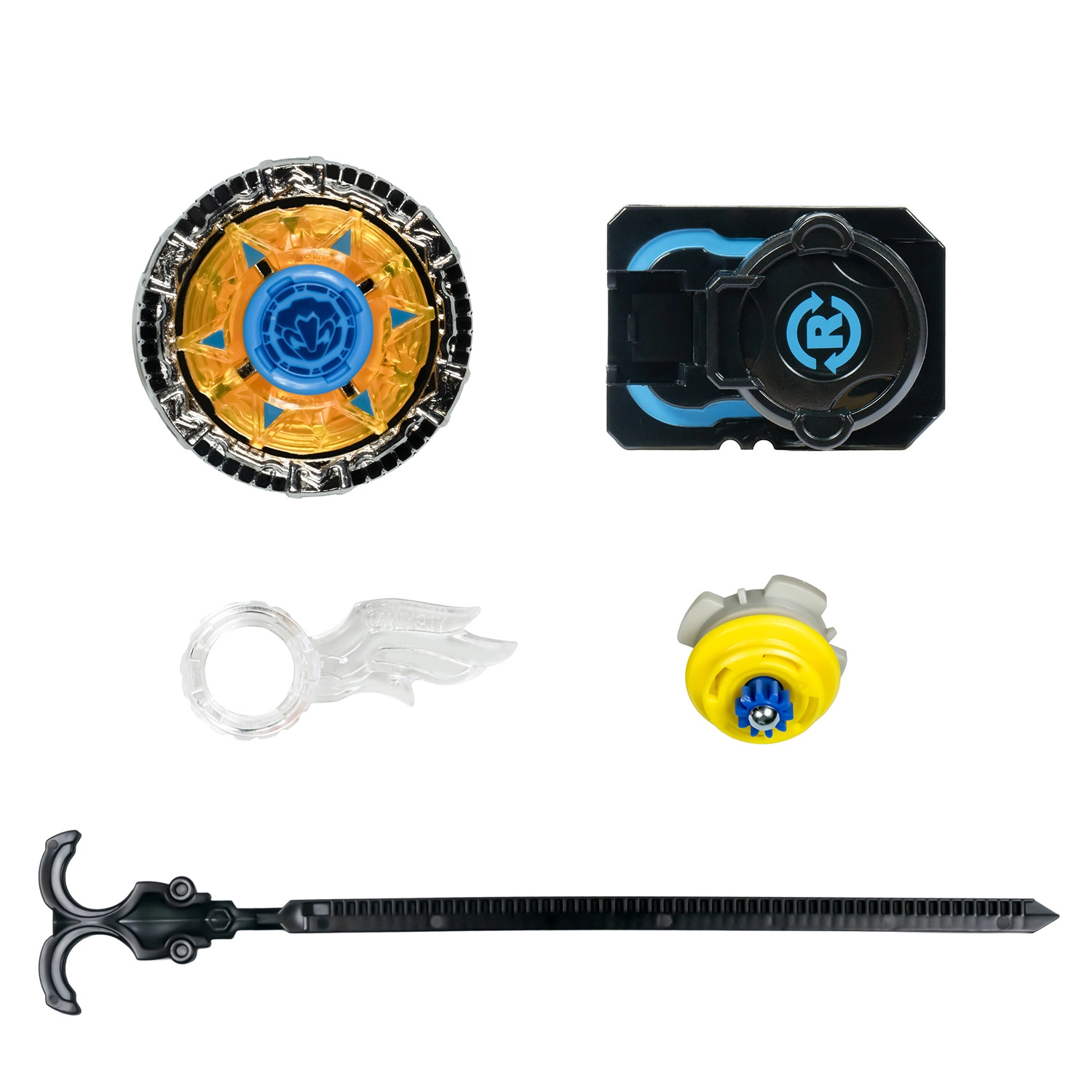 В комплект входят: волчок, пусковая установка, лента для запуска, сменный наконечник, монтажный инструмент, инструкция. Упаковка - коробка с окном 17×6×19,5 см.